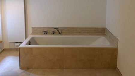 Mineralische Putze spielen getrade im Bad ihre stärken aus. Die hohe Feuchtigkeitsaufnahme- und abgabe verhindert zu hohe Luftfeuchtigkeit und damit verbundene Schäden